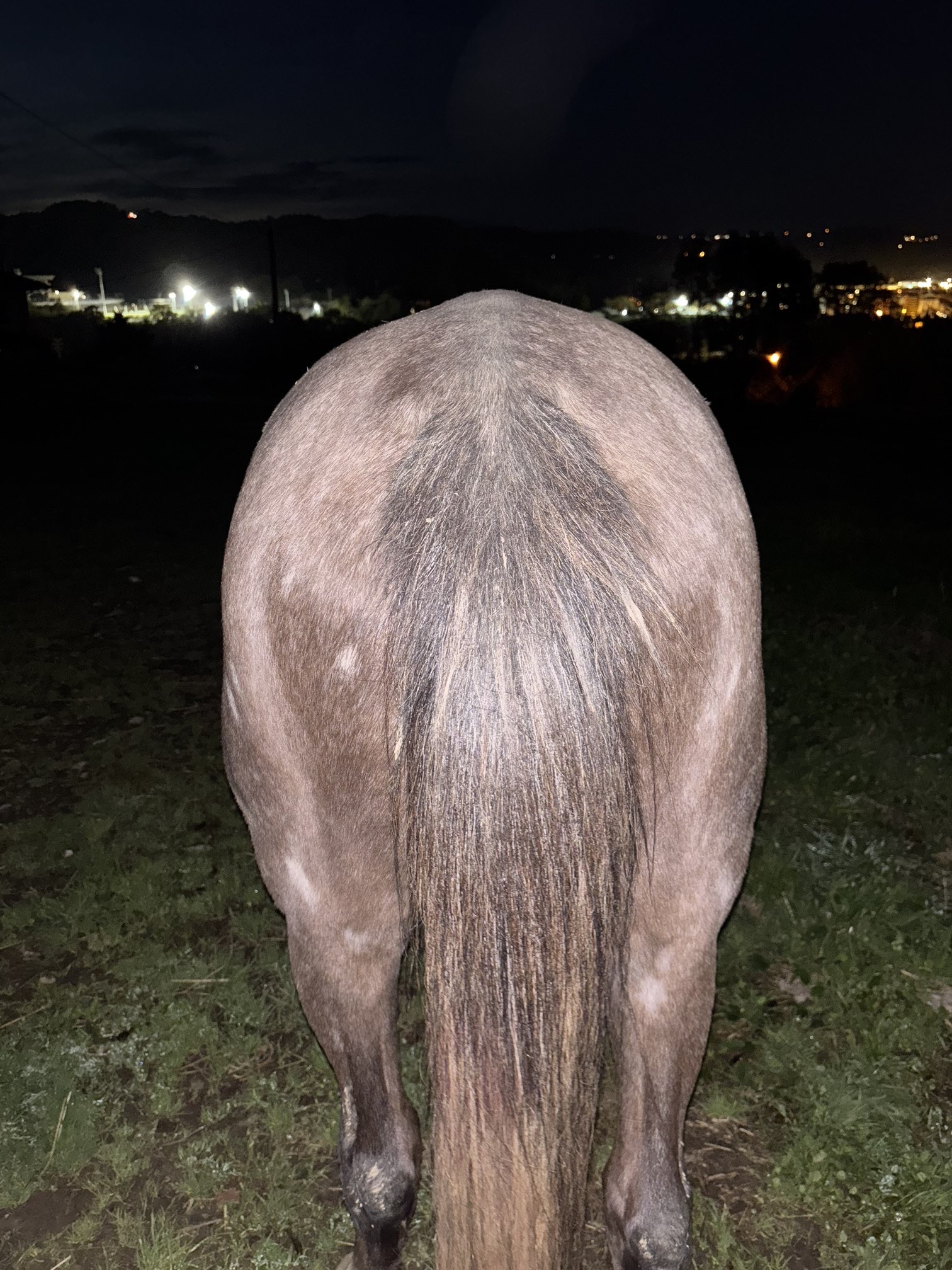 Ahora está un pelín gordo en la grupa pero la cruz es ancha de músculo asique estaba pensando en una montura vaquera o australiana. Bueno, una montura ancha que distribuya más el peso para esos paseos.