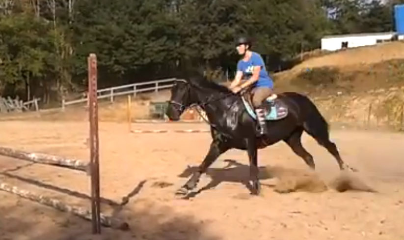 El caer y partir es también un buen ejercicio para compensar el físico un poco caído hacia las manos de la yegua sin que tengas que intervenir con tu mano. Subes y bajas por el monte, muchas barras y muchos cambios de aire y de dirección, flexibiliza lateralmente a la yegua para luego alargar su tranco.